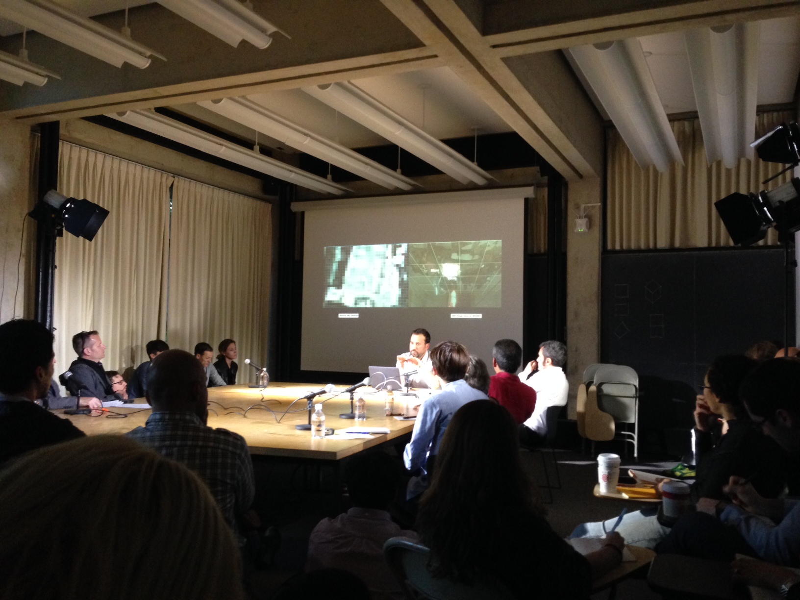 Eyal Weizman presented his “Forensic Architecture Project” yesterday at Princeton. This is a major endeavor involving architects, artists, filmmakers, theorists and activists collaborating in transforming spatial analysis into potential evidence for prosecuting human rights crimes, and providing research on the exact way drones, bombings and invasions operate today. This project collaborates with many organizations around the world. His talk today explored the concept of “Threshold of detectability”: He mentioned how today’s missiles being used in conflicts such as Gaza leave a hole in the walls and ceilings of the buildings attacked of about 30 cm in diameter, just a little smaller than what satellite images can capture (because satellite images are limited to a pixel size of 50 cm square, so that when you zoom into the image of a damaged building you cannot see these holes, blurred in the monochromatic color of the pixel). Weapons today operate below this threshold of detectability and thus their devastation does not leave traces or records that can be used in prosecution. This is made on purpose, taking advantage of satellite regulations. Such practices around the “threshold of detectability” are adopted by modern warfare, but can also be re-appropriated by militant practices (or militant investigation as Colectivo Situaciones has suggested for other contexts).