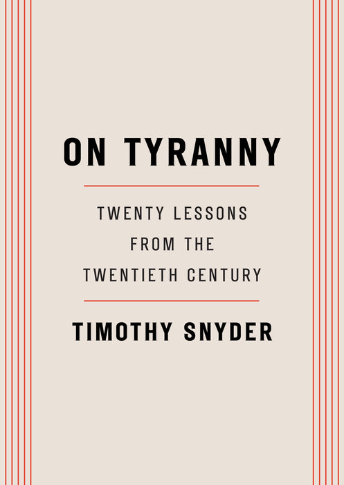 snyder-on-tyrannyWe often cite James Madison’s acute observation from Federalist 10: “Enlightened statesmen will not always be at the helm”. Timothy Snyder’s On Tyranny: Twenty Lessons from the Twentieth Century (2017), is written keeping this political conviction in sight, so indispensable to the democratic aspiration of the framers more than two centuries ago. Snyder, however, is no messenger of good news. In line with those that have taken seriously the rise of presidentalism, and the expansive politization of the executive branch in recent decades, Snyder is making the case for a timely warning against a potential threat for tyranny in the wake of Donald J. Trump victory at the end of last year.