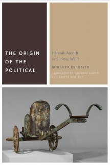 Vicenzo Binetti and Gareth Williams’ translation of Roberto Esposito’s The Origin of the Political: Hannah Arendt or Simone Weil? (Fordham U Press, 2017) fills an important gap in the Italian thinker’s philosophical trajectory, connecting the early works on the impolitical (Categorie dell’impolitico, Nove pensieri) to the latest elaborations on negative community and the impersonal (Terza persona, Due, Da Fuori). Origins is also an important meditation on the problem of thought, and Esposito admits that had he written this work today, he would have dwelled more on this question central to his own philosophical project up to Da Fouri and the turn to “Italian Thought” (pensiero vivente). Nevertheless, The Origin of the Political is a unique contribution that crowns a systematic effort in mapping the rare misencounter and esoteric exchange between two great Jewish thinkers of the twentieth century: Hannah Arendt and Simone Weil.